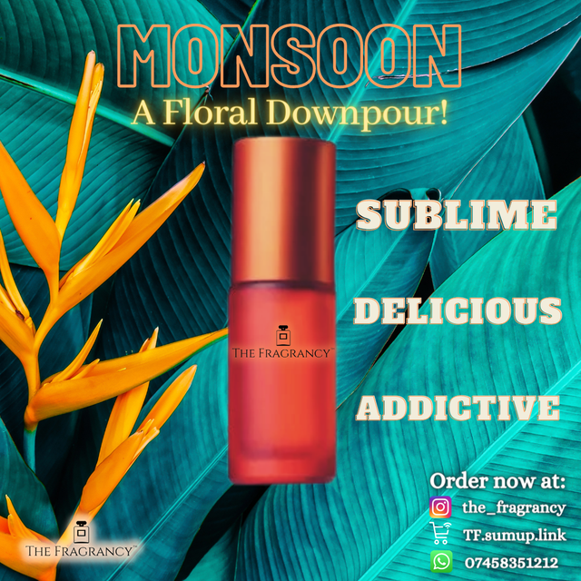Prepare for a floral fascination! Inspired by Viktor & Rolf Flowerbomb, Monsoon is sublime, delicious, and addictive. Experience the sparkling top notes of Tea, Bergamot, and Freesia; be enveloped in the floral heart of Sambac Jasmine, Cattleya Orchid and Centifolia Rose; and immerse in woody base notes of Amber and Patchouli.