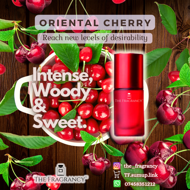Inspired by Tom Ford Lost Cherry, Oriental Cherry is layered with dark spices and jammy fruit, but the combination isn’t excessively sweet. It opens on a bright accord of fresh sour cherries, but it darkens almost instantly to woods and burnished spices. The cocktail of rose, jasmine, sandalwood, and a beautiful note of salty vetiver balance out the gourmand decadence of the fruit. Imagine the scents of pipe tobacco and aged Scotch, stewed plums with star anise and roasted almonds. Imagine their sweetness being removed, leaving behind just the intensity and warmth. Top notes are Sour Cherry, Bitter Almond and Liquor; middle notes are Sour Cherry, Plum, Turkish Rose and Jasmine Sambac; base notes are Tonka Bean, Vanilla, Peru Balsam, Cinnamon, Benzoin, Sandalwood, Cloves, Cedar, Patchouli and Vetiver.